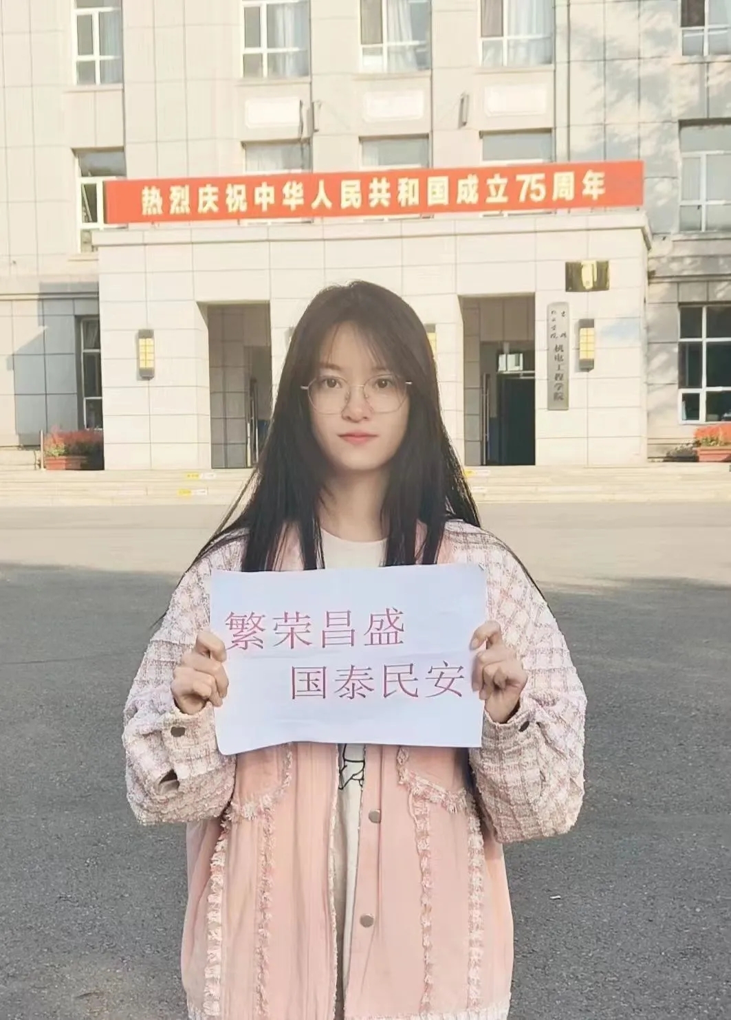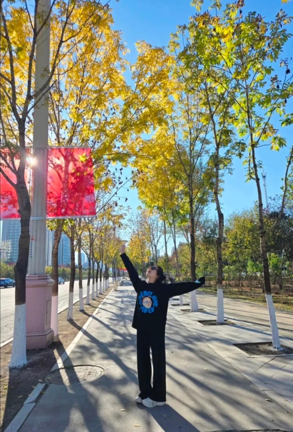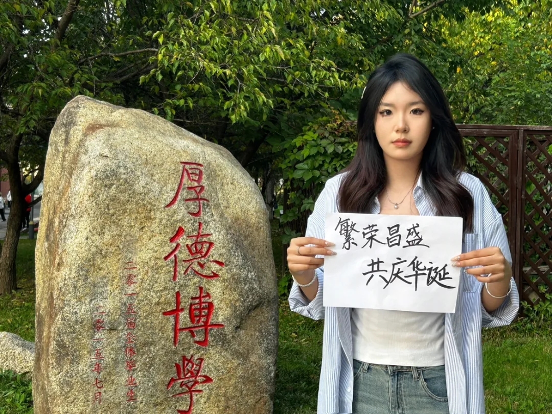 这张照片不仅仅是我的模样,更是祖国生日之际,我与国家同欢的记忆,它将永远提醒我珍惜这来之不易的和平与幸福。