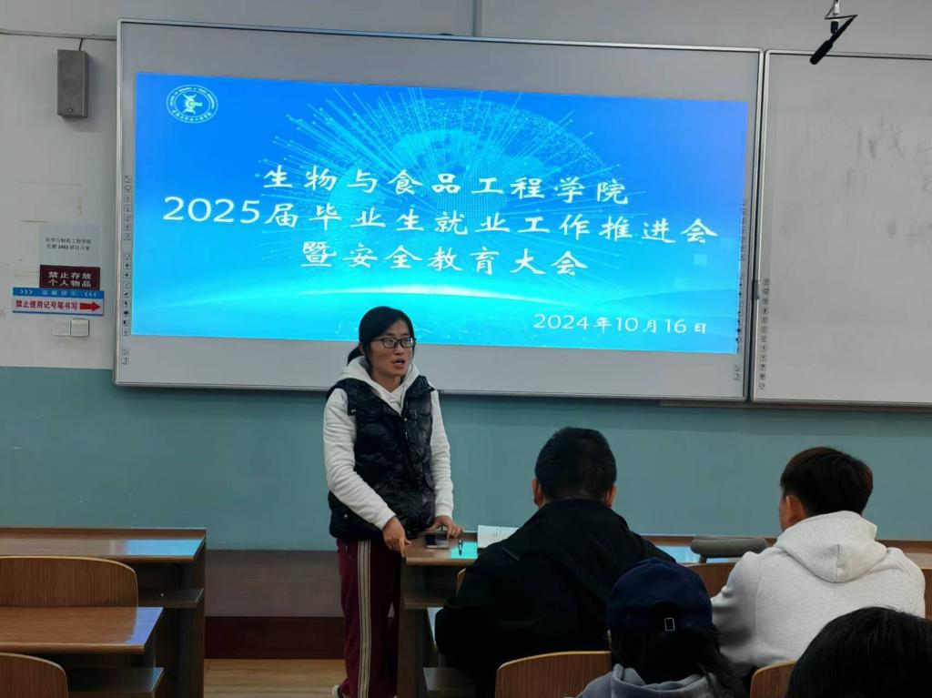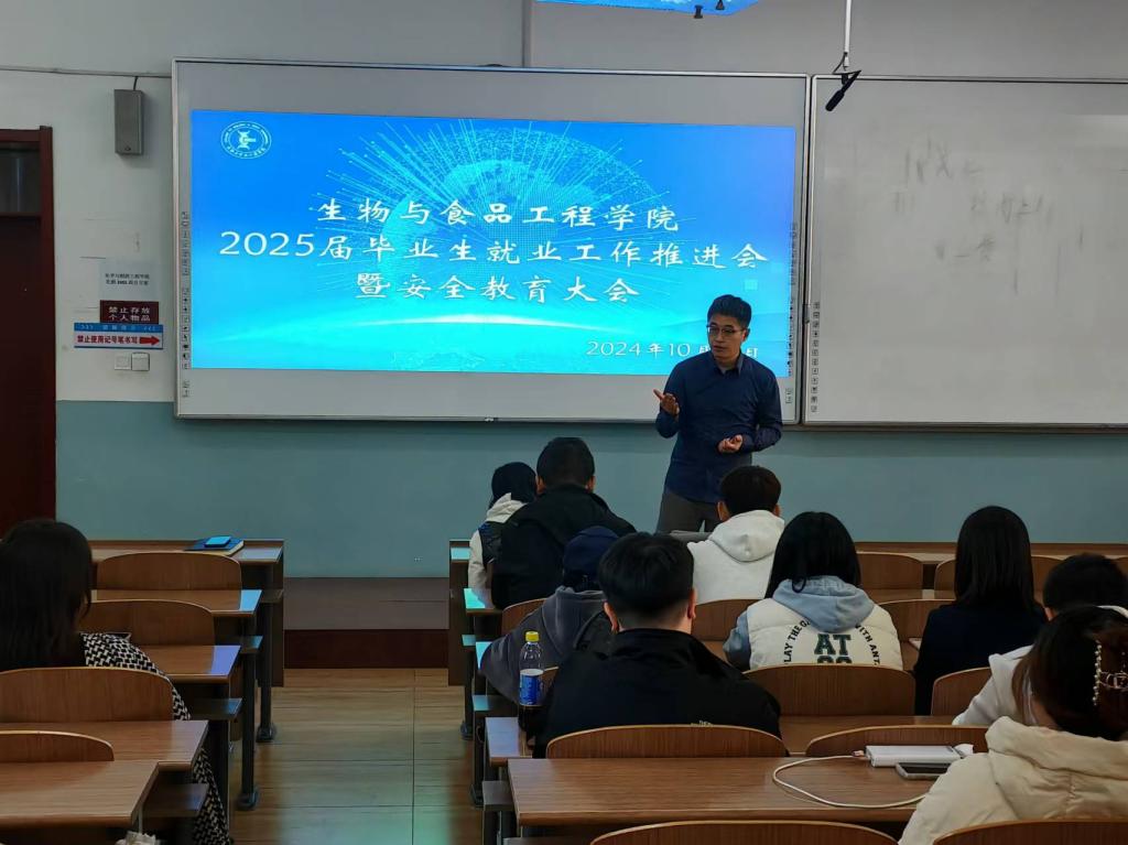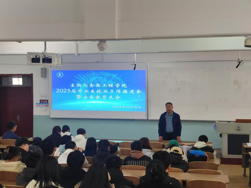 为进一步推进2025届毕业生就业工作,确保学生高质量充分就业,同时保障学生安全,英国上市公司365于2024年10月25日在1教109教室召开“2025届毕业生就业工作推进会暨安全教育大会”,学院院长张元新、党委副书记孙京南、副院长张仁文、学办主任裴林及2025届全体毕业生参加此次会议,会议由裴林主持。