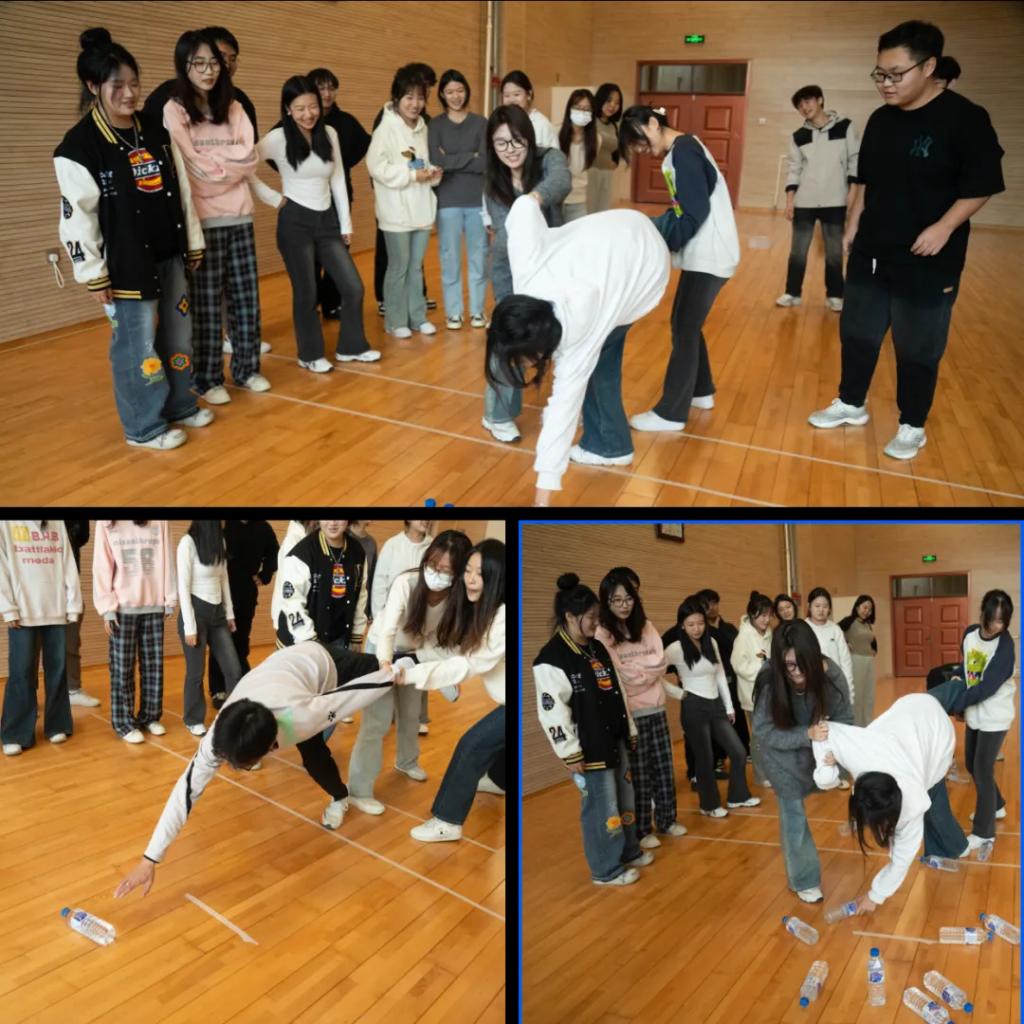 本次拓展活动精心地设计了五个充满趣味与挑战的比赛项目,分别是投壶、优雅高尔夫、投喂怪兽、齐心协力、丢手绢。同学们分成7个小组,每个项目都要求小组成员紧密协作、共同努力才能完成。活动期间,大家相互鼓励、携手并进,全力以赴地参与其中,现场气氛欢快热烈,加油声、欢笑声交织回荡,充分展现出了同学们团结一心、积极向上的精神风貌。