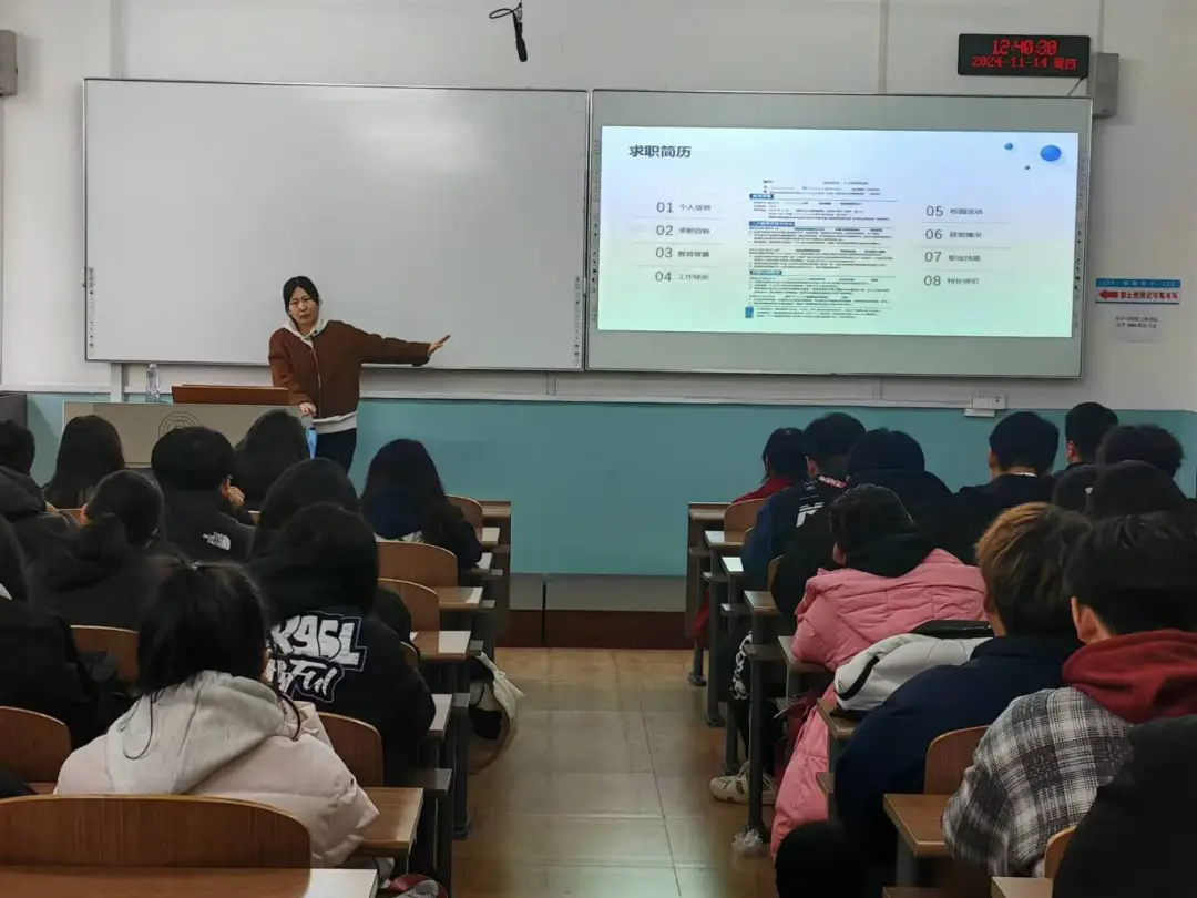 在培训会上,裴老师深入解读大赛,从成长与就业赛道的参赛要求、评审标准入手。规划书内容需清晰完整,自我认知部分要全面客观,可借性格测试、经历回顾展现性格、兴趣与能力。职业目标设定要明确合理,结合市场与自身情况。发展路径规划需详细,明确各阶段任务目标。就业赛道简历是职场敲门砖,基本信息简洁突出重点。技能清单要有针对性,证书和荣誉有选择呈现,与就业方向相关优先。优秀简历能助求职者脱颖而出,开启职业大门。