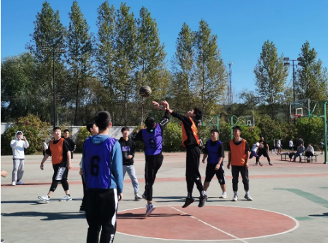 身法矫健迈步冲,生食院男篮飒英风,团结协作气如虹!