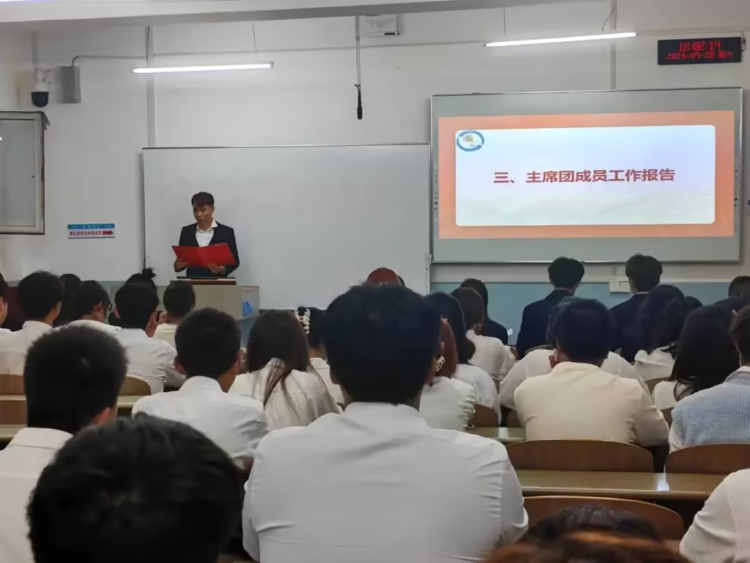 学院主席团成员张海川对过去一段时间的工作进行了全面而深入地总结。在回顾工作成果时,张海川提到,学院学生会坚持推进优化部门架构,明确职责分工,通过定期培训和交流活动,提升了成员的团队协作能力与业务水平,积极营造了良好的内部文化氛围,增强了组织的凝聚力。同时他也表示:期望新一届学生会骨干能够传承和发扬学生会的优秀品质,为学院发展添动力,携手创造更加绚丽的华章。
